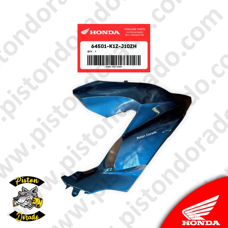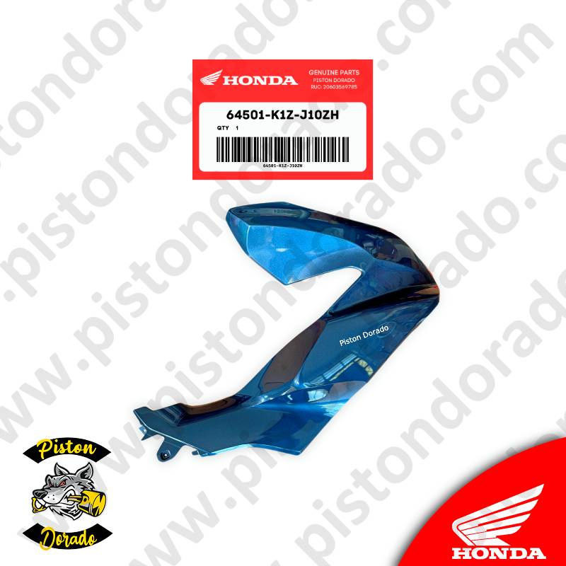 Renueva el aspecto y la protección de tu Honda PCX160 con la cubierta lateral delantera derecha en azul, un repuesto original diseñado especialmente para este modelo por Honda. Esta cubierta no solo añade un toque de estilo único a tu motocicleta, sino que también ofrece una protección confiable contra los elementos y el desgaste diario.