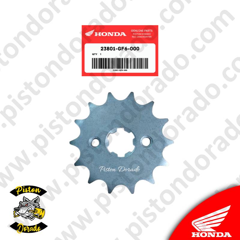 El piñón de arrastre 14 dientes original Honda garantiza una transmisión de potencia eficiente y segura en tu motocicleta. Compatible con los modelos GL125, CB110 y CBF125 TWISTER, este repuesto mantiene el rendimiento óptimo del sistema de transmisión, reduciendo el desgaste y mejorando la respuesta del motor.