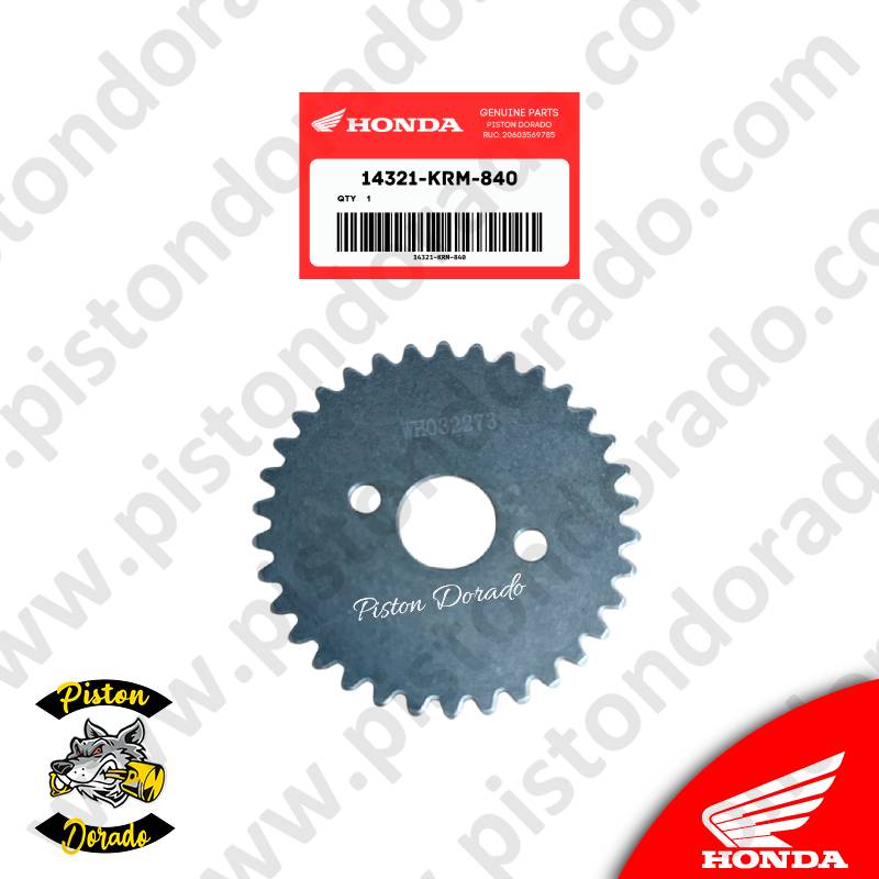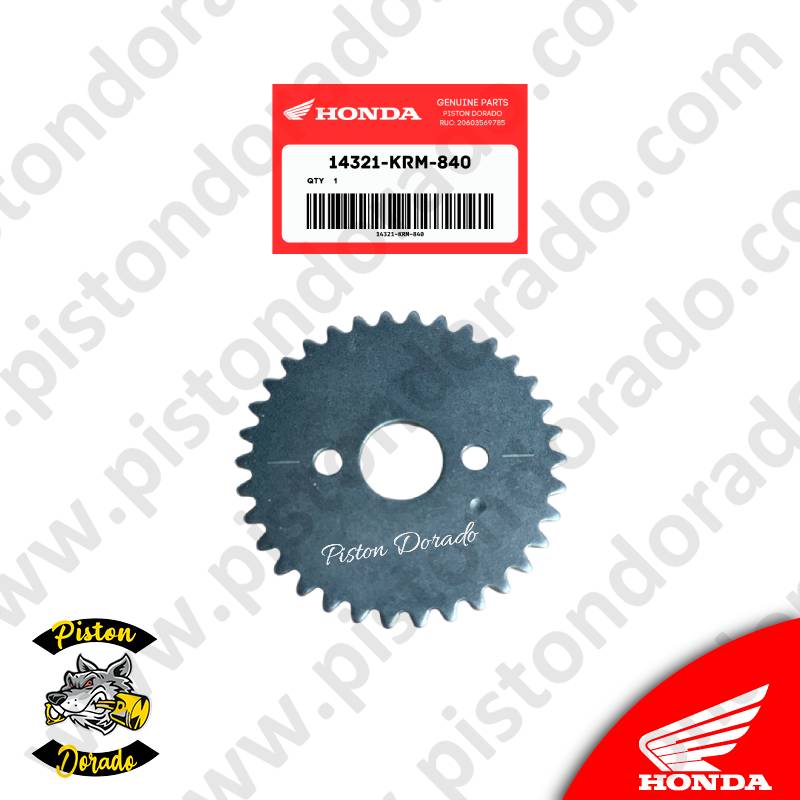 Piñón de cadenilla de 34 dientes, diseñado para garantizar el correcto funcionamiento del sistema de distribución en una amplia variedad de motocicletas Honda. Este repuesto original asegura durabilidad, precisión y un rendimiento óptimo.