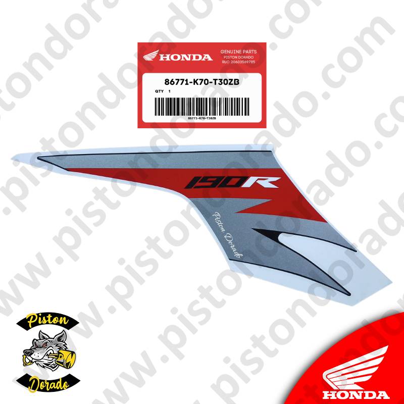 Sticker Adorno Posterior Derecho Motocicleta Azul CB190R V2 Honda.